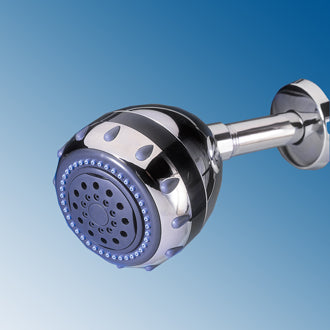 - 5-spray setting shower head, chromed finish and chrome plated brass ball joint